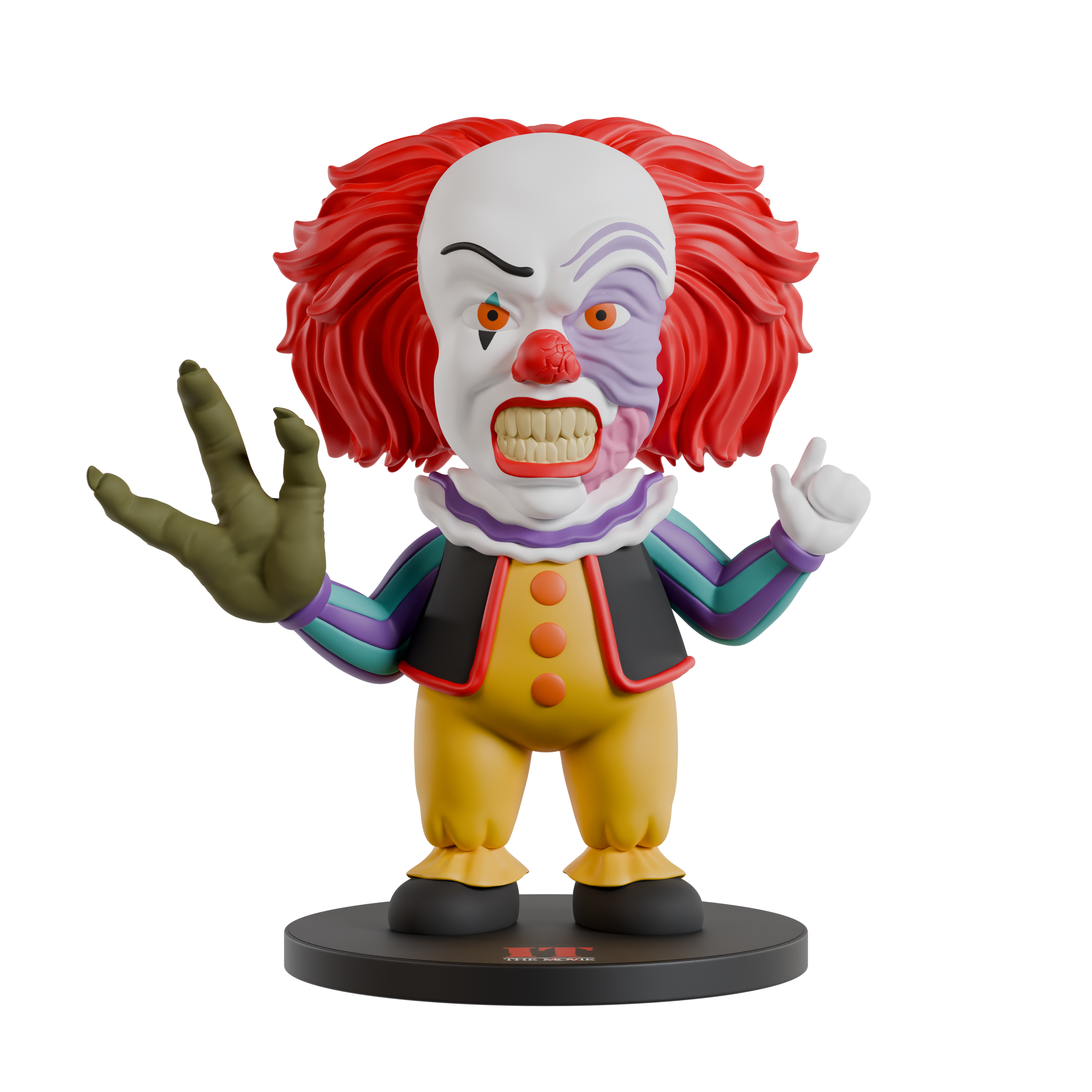 Clown figurine with red hair and white face on a black base